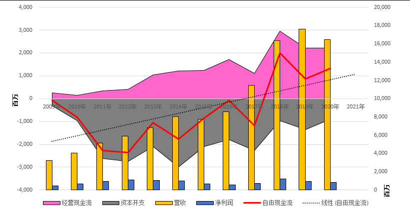 至于担心不断的投入导致价值的毁灭,可以理一下过去10年中移动的自由现金流,基本上一目了然。而A/H价格的问题,属于老生常谈,没啥意思。