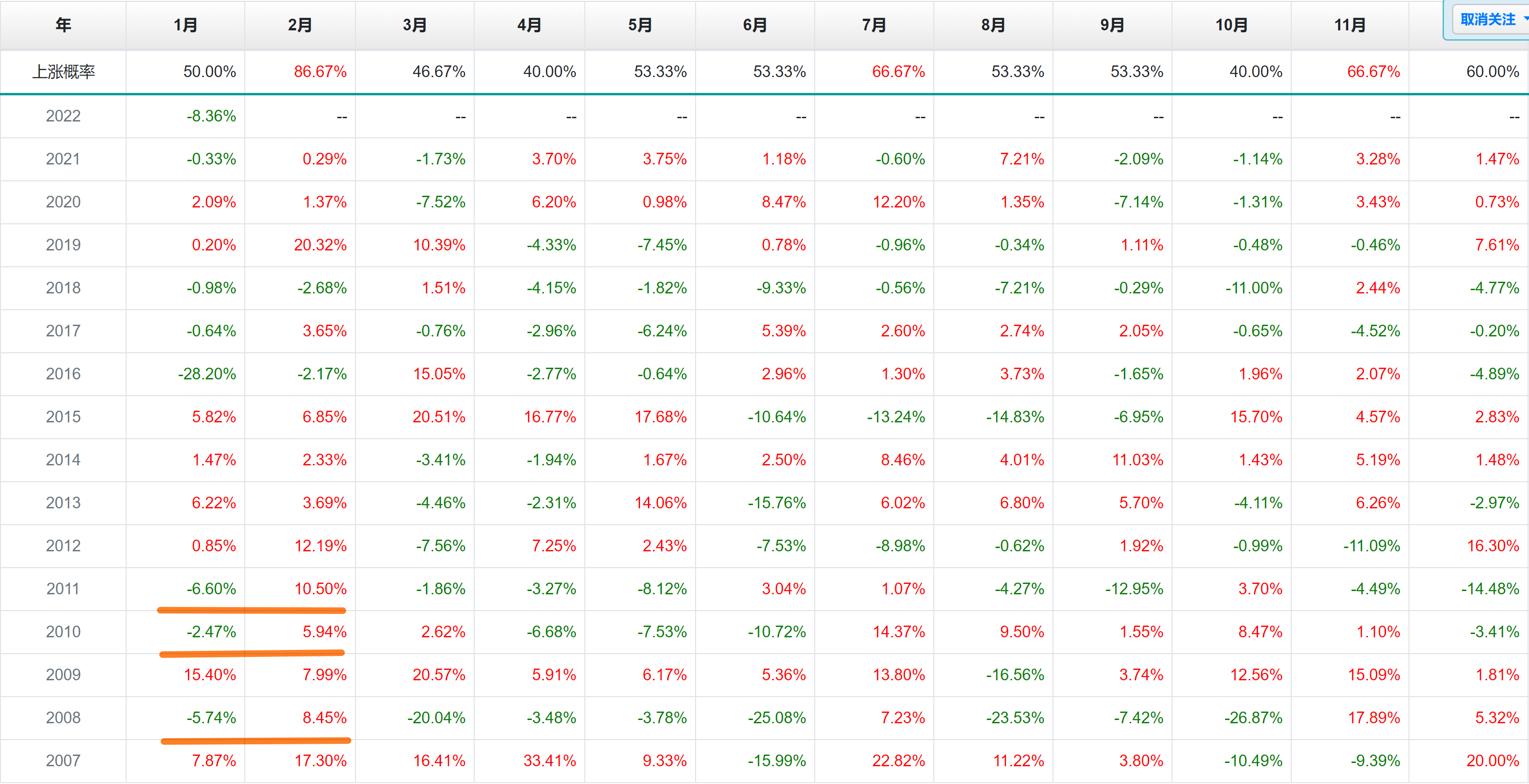 况且2月是上涨概率最高的一个月,前几次1月出现大跌,2月涨幅都不小。