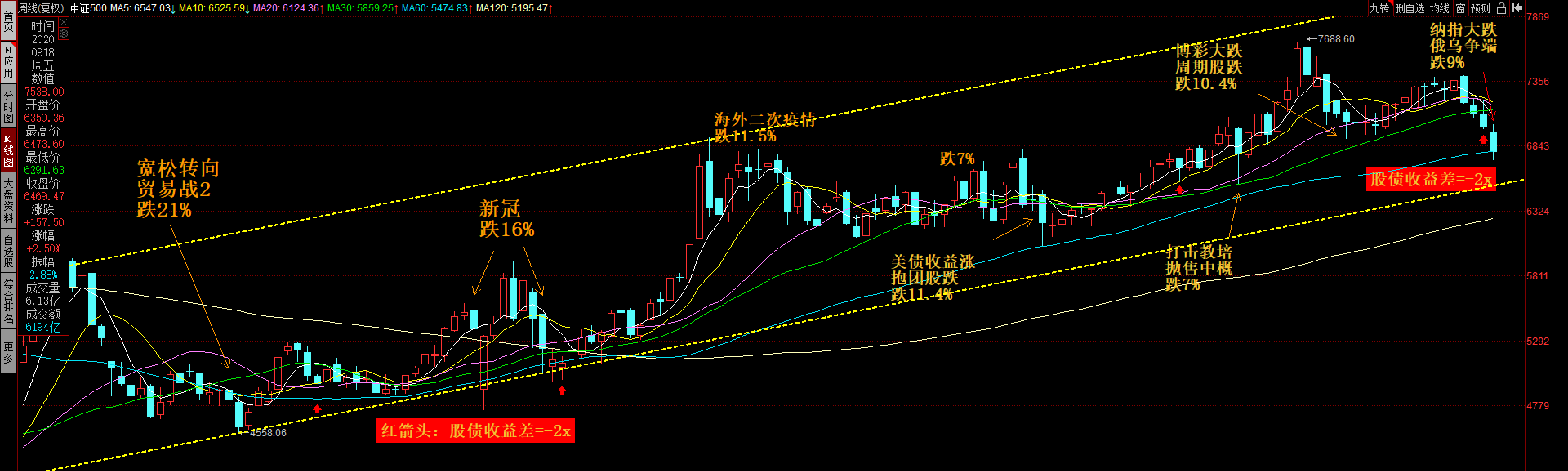 1. 中证500跌幅达到9%,此前几次回撤跌幅10-11%,已经非常接近。