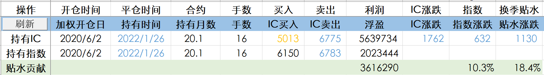 贴水吃了19.3个月有347万,总浮盈从222万涨到了733万,