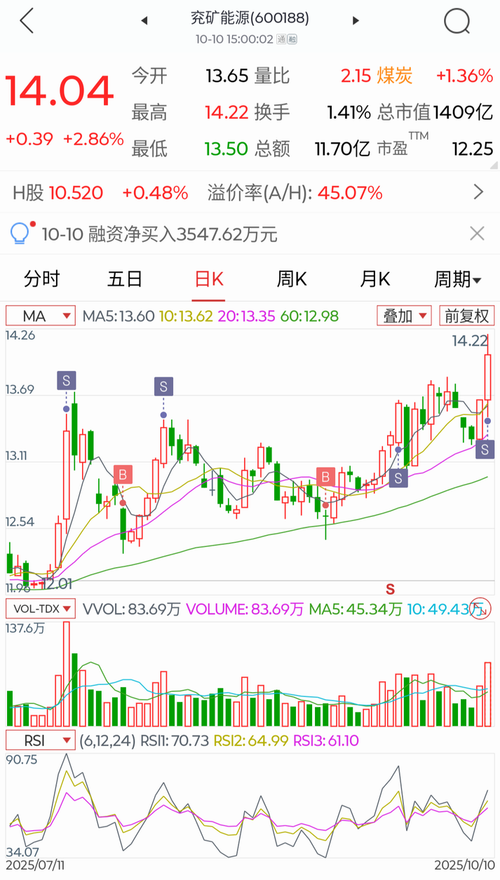 14.05加仓的 兖矿能源, 我计划 15.21减仓