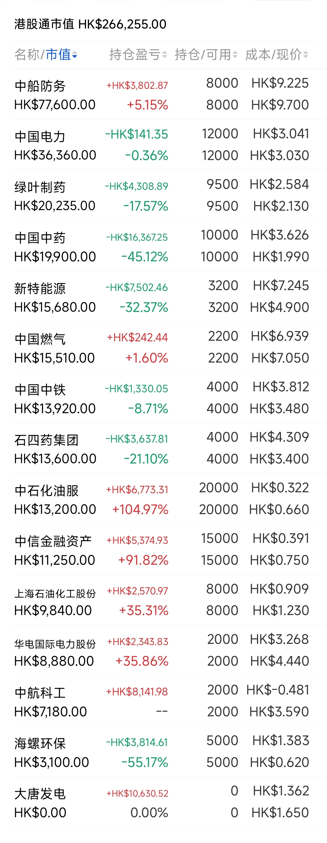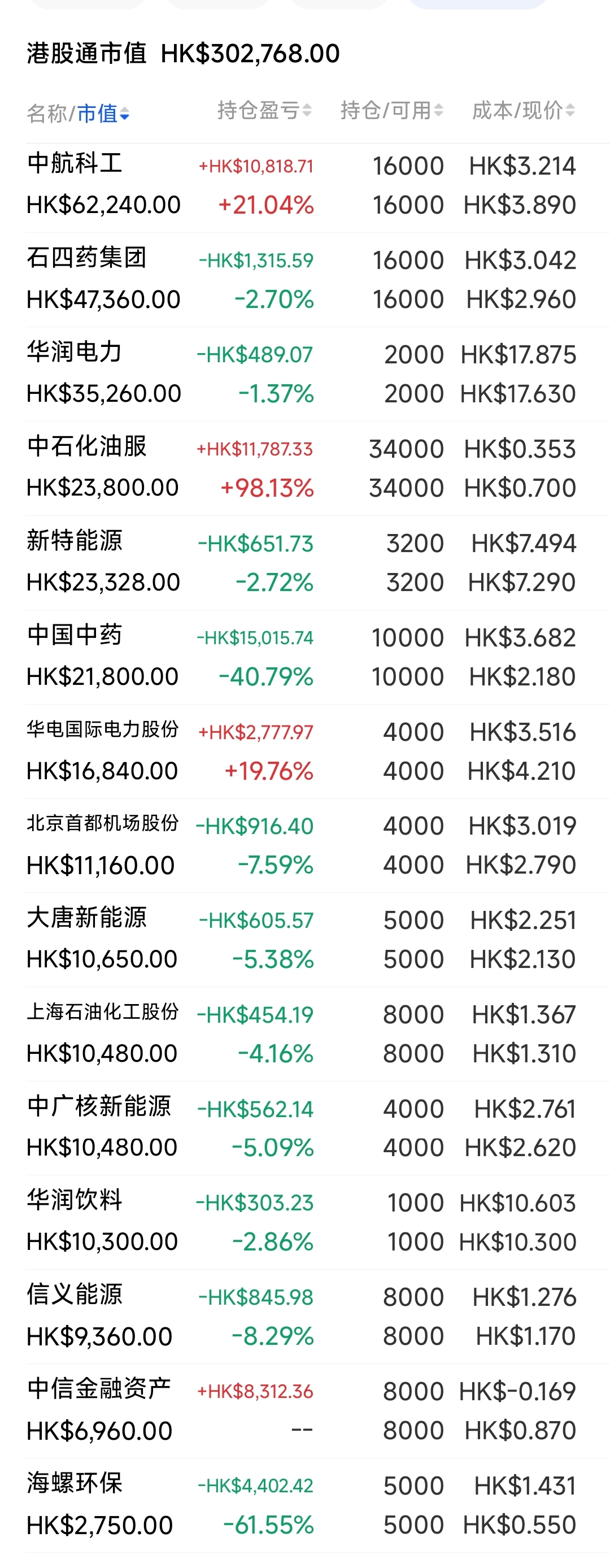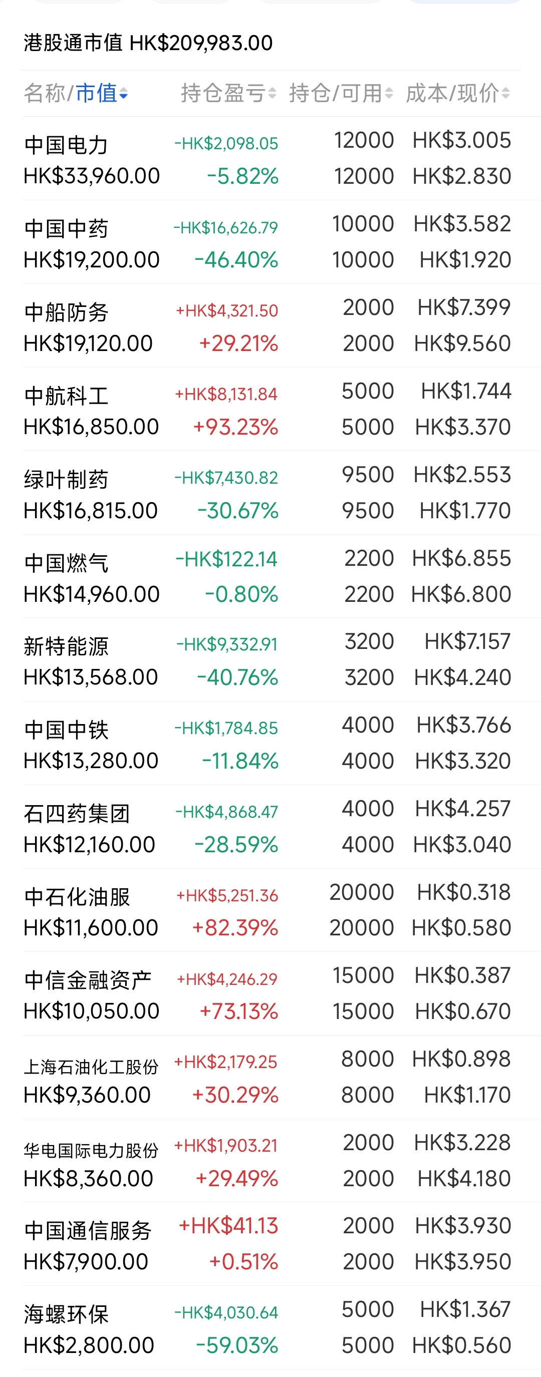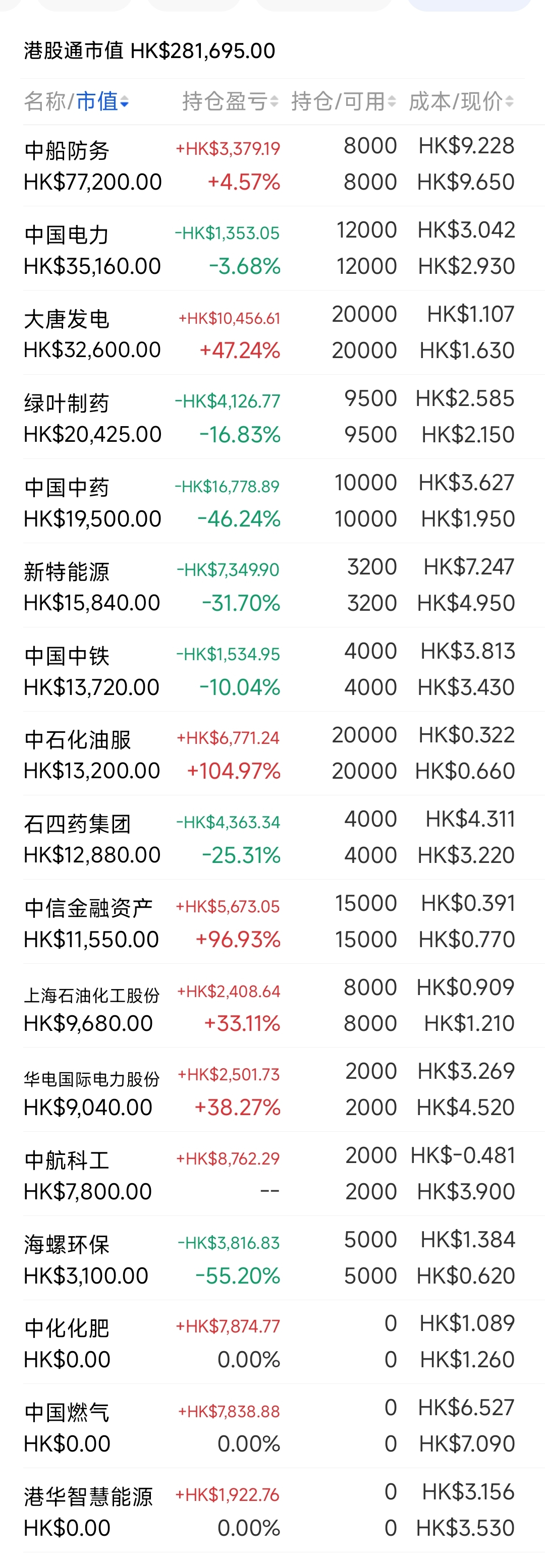 2021年12月觉得港股跌得差不多了,陆续投入部分资金分别摊些大饼,