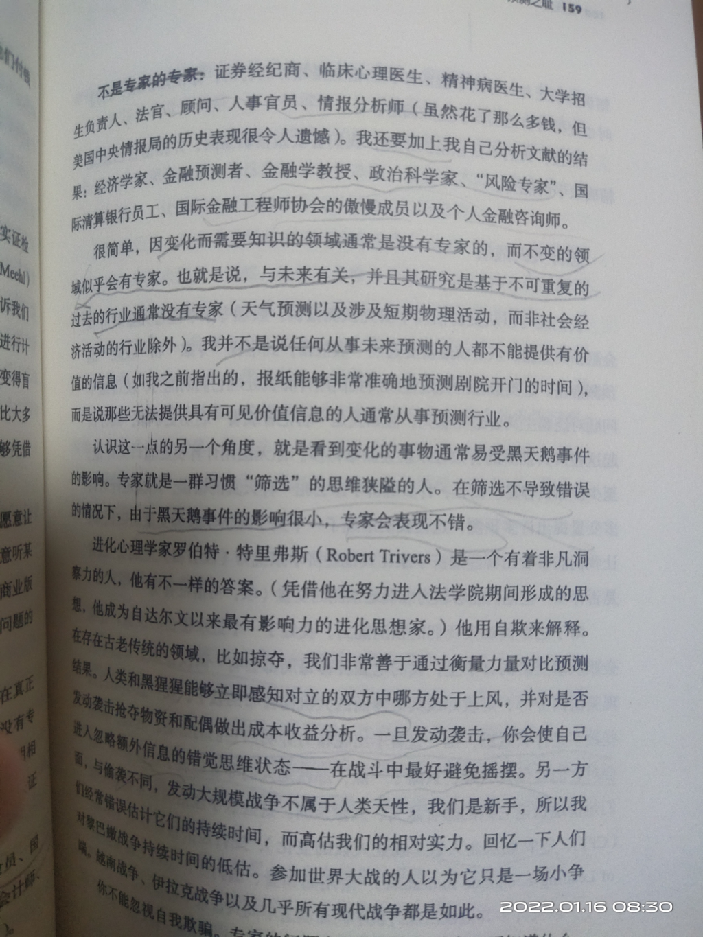根据特勒布黑天鹅里的说法,有些领域的专家是起作用的,比如说物理学家,飞行员,宇航员,会计师,数学家。有些领域的专家,无法证明存在特定技能。与未来有关,而且其研究是基于不可重复的过去行业是没有专家的。也就是说,基于随机性因素,历史数据是随机的,要根据这些随机的历史数据来预测未来,这样的领域,是没有专家的。比如说证券经纪商,心理医生,情报分析师,经济学家,金融预测者。(我不是很明白,法官为什么也是其中之一?是因为海洋法系的原因吗?)
