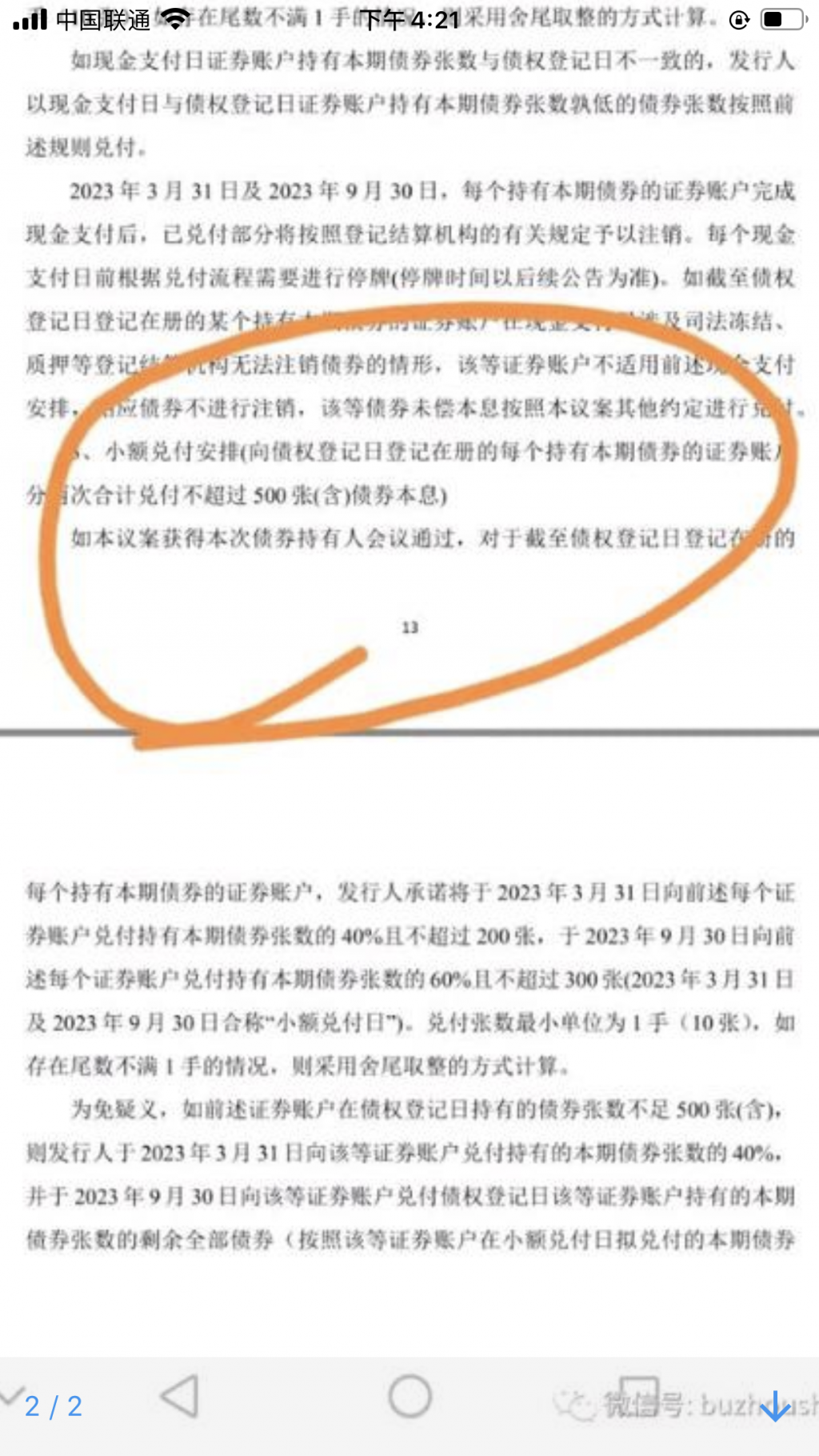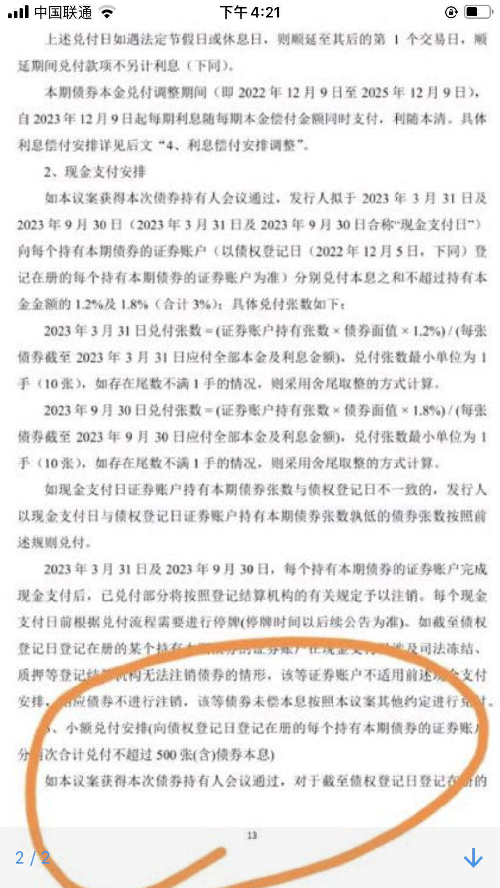 建议用新版网站(操作一样)看下面的条文,小于等于500张的将于20230331和20230930还完。和202204月的展期计划差不多。对小额投资者似乎还能接受。