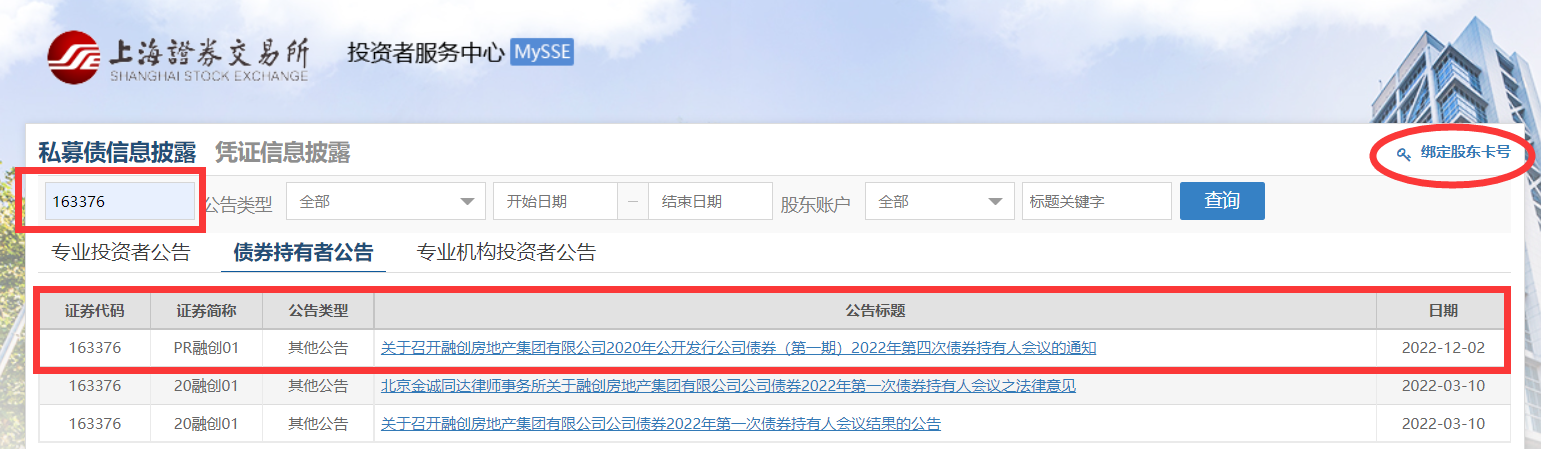 然后点击登陆后的首页右下角“私募信息披露”,然后点击“债券持有者公告”,然后在上面输入代码查询,就可以查到你持有的融创债的持有人会议通知,点开后里面有投票流程和要准备的资料。