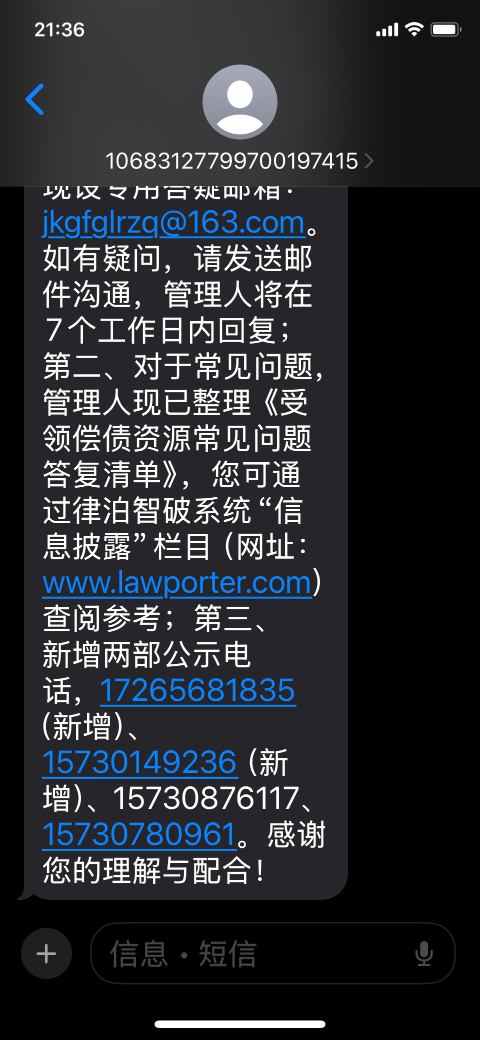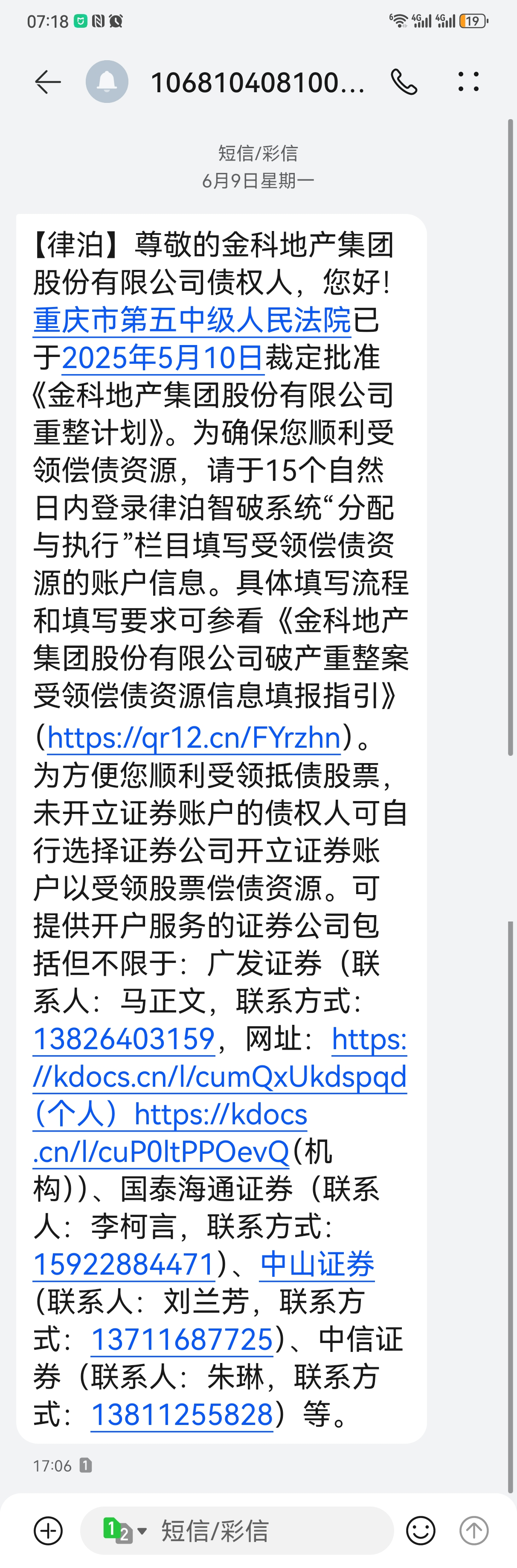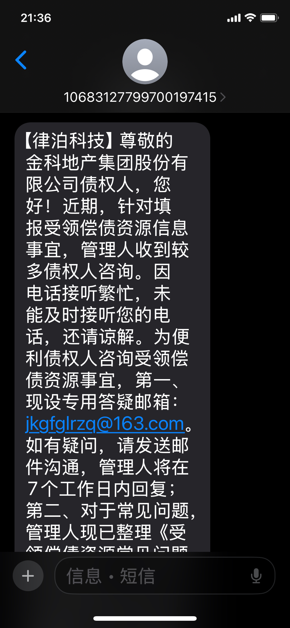 金科的钱快要回来了。今天收到短信通知,要求登记收款账号了。