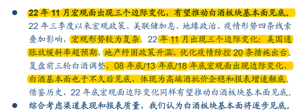 好几个券商的看法,消费首看高端酒,还有受益包装等成本下降的调味品。品一下,觉得对消费看的并不高,至少目前是。这波消费涨了不少了,底部上来很多要50%+。明年是啥情况,就看这钟到底转不转的动,上半年估计虚。