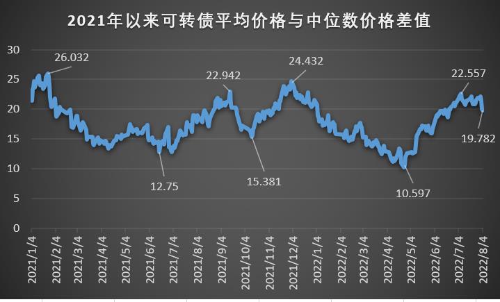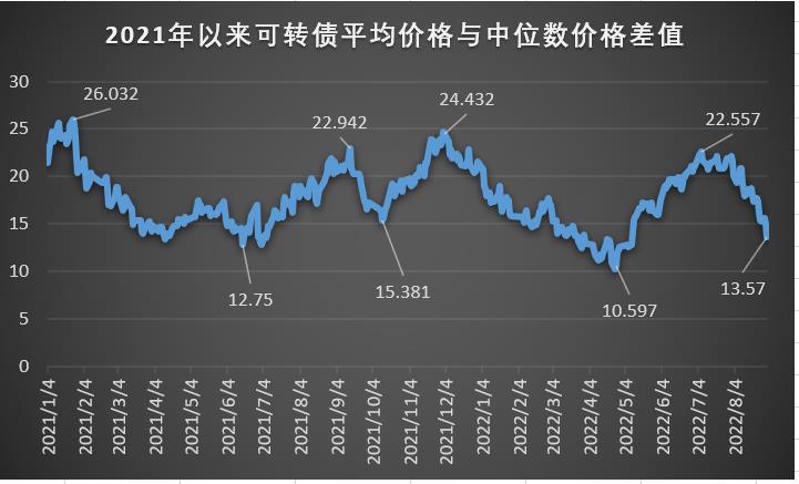 今日可转债平均价格147.45,中位数价格127.67。二者差值回落到在20以内。