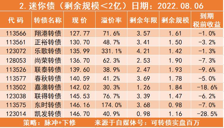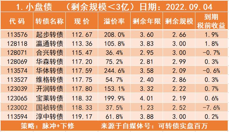 小盘债负责脉冲,低价债负责博下修,临期债负责博强赎。