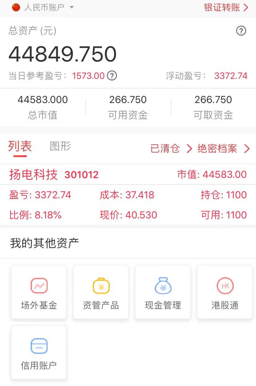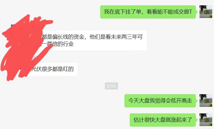 very good的一天,大获全胜。尾盘有惊喜。最后十五分钟得益于电力特高压板块大涨,小杨同志直接拉到+3.58%。上午跌四个点的时候加仓加的胆战心惊,所幸有惊无险。集合竞价T了一点出来。