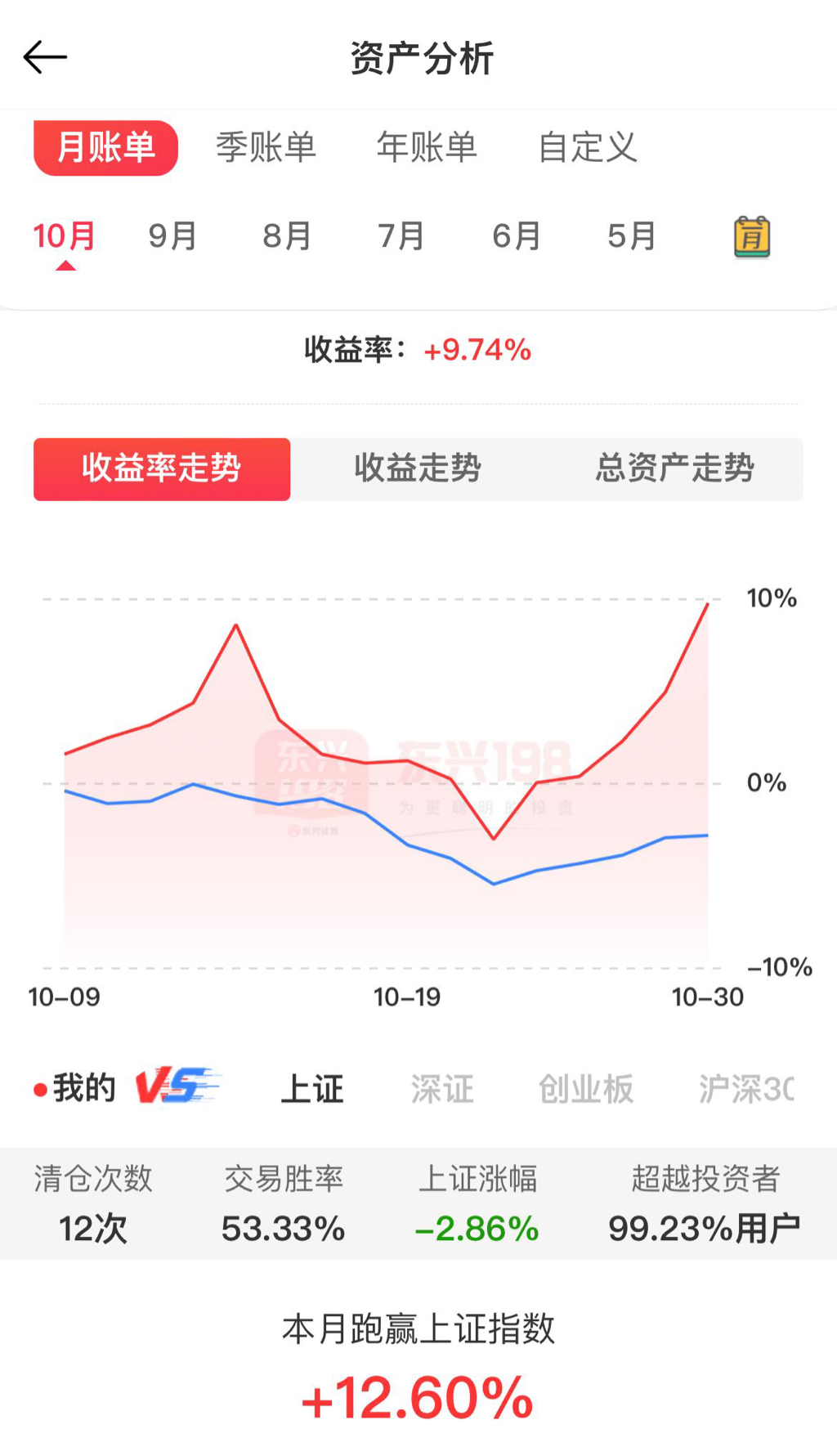 10月份做的不好,本来第一周就五天全红了,结果没舍得卖,后面两周都还回去了。