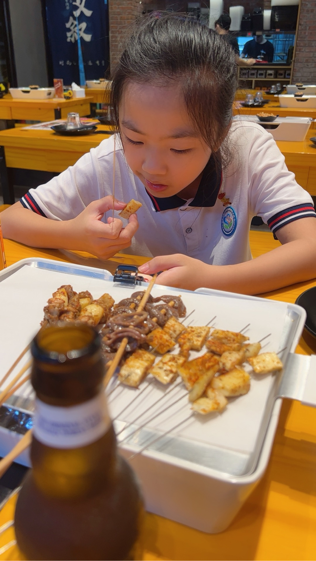 除了股票,还有生活,带女儿到门口吃点烧烤。