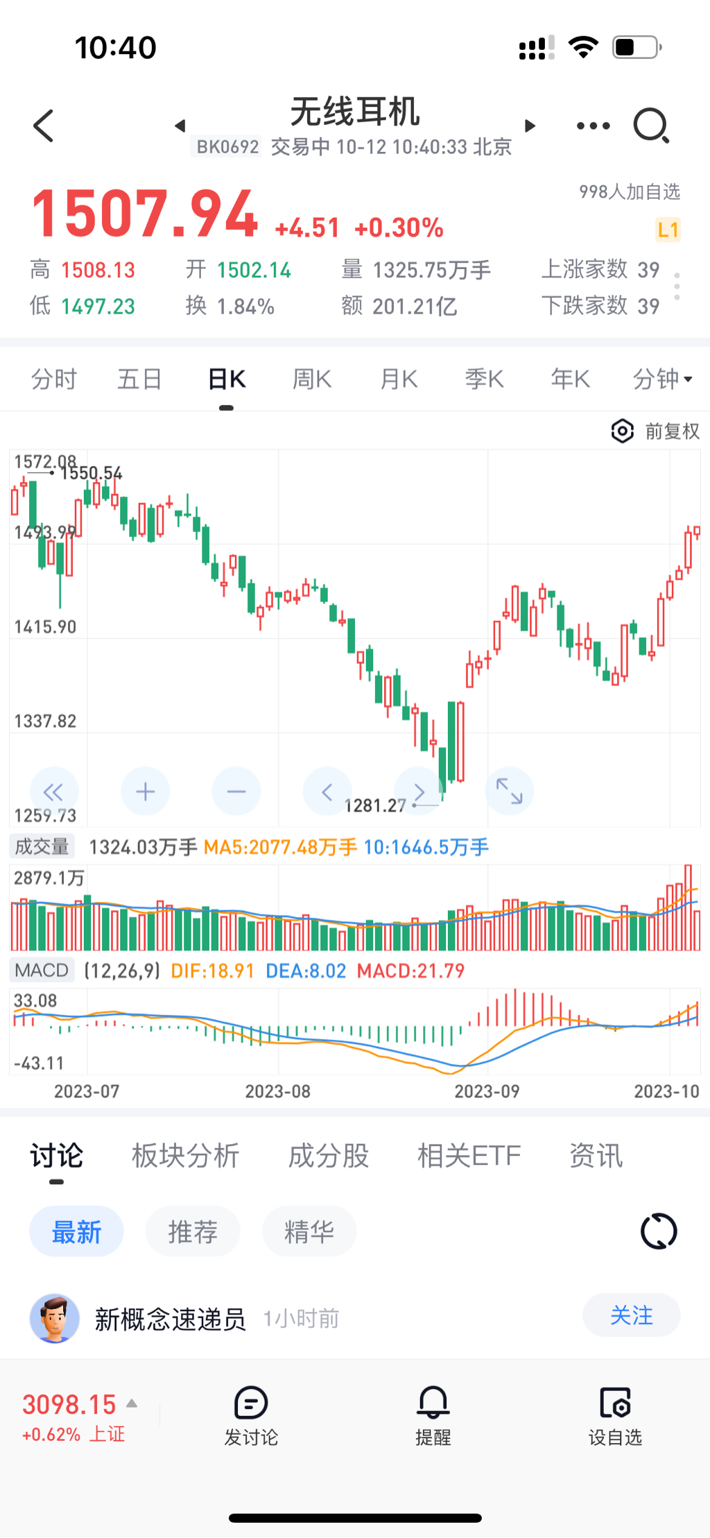 板块很强,可惜紫建电子不行,很拉垮。这个位置不能加仓,浮赢才能加仓。现在买的都亏了,我要注意一下止损的问题了。