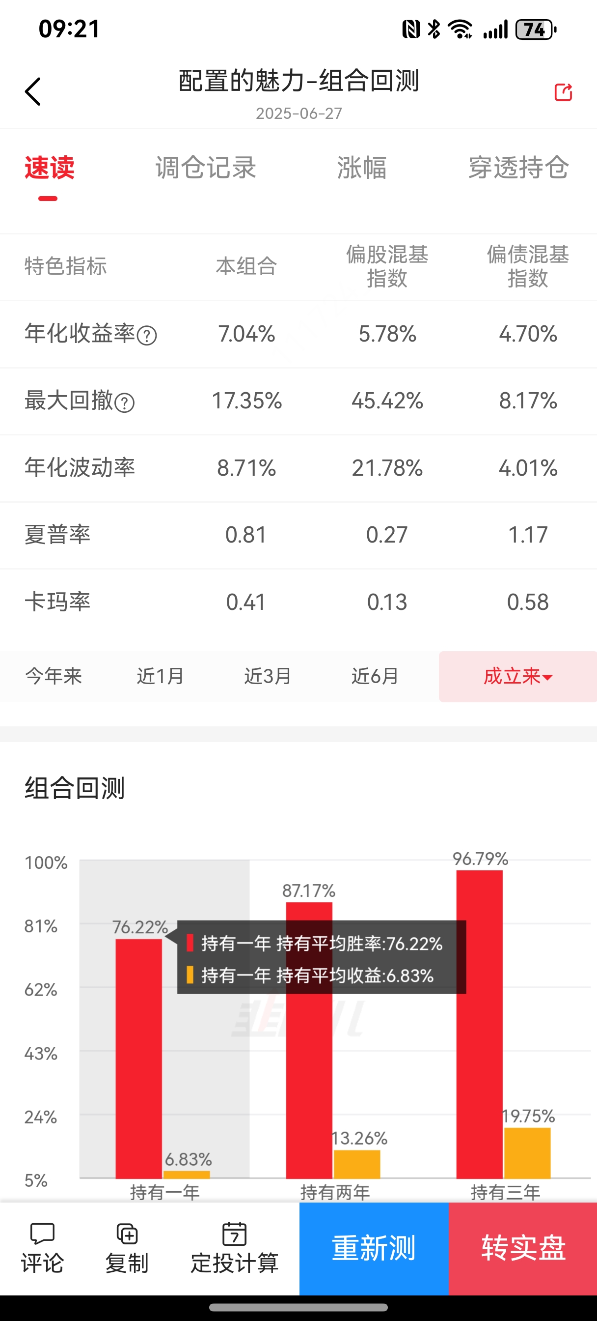 4、长期投资,收益率还是不错的。从回测数据看,投资时间变长,有效性会变差,组合按照某种规则更新还是必要的。具体看组合的表现。