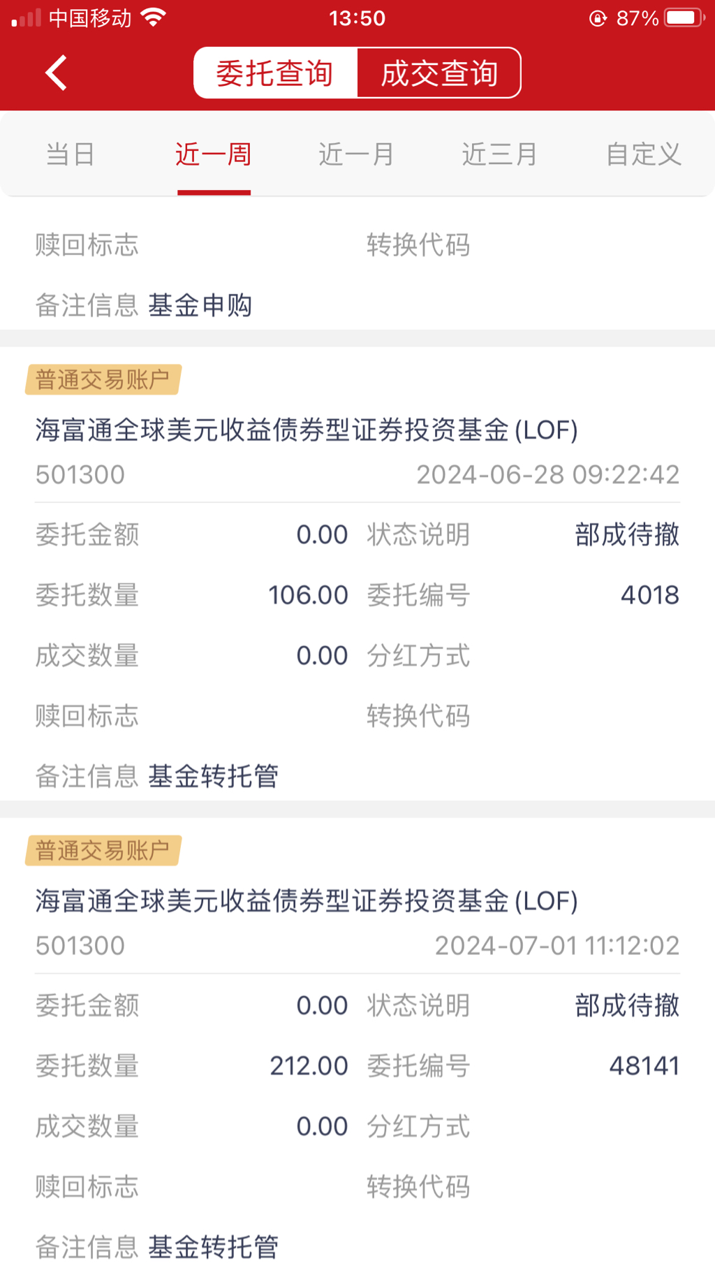 3、场内LOF申购费打折的实现方式为:全额冻结申购款,按不打折费率给基金份额,在交割时会只扣除申购到的基金市值 优惠后的申购费,剩余资金会自动解冻回到账户;自己核对申购的方式:交割单——用手续费/成交金额=真实申购折扣;