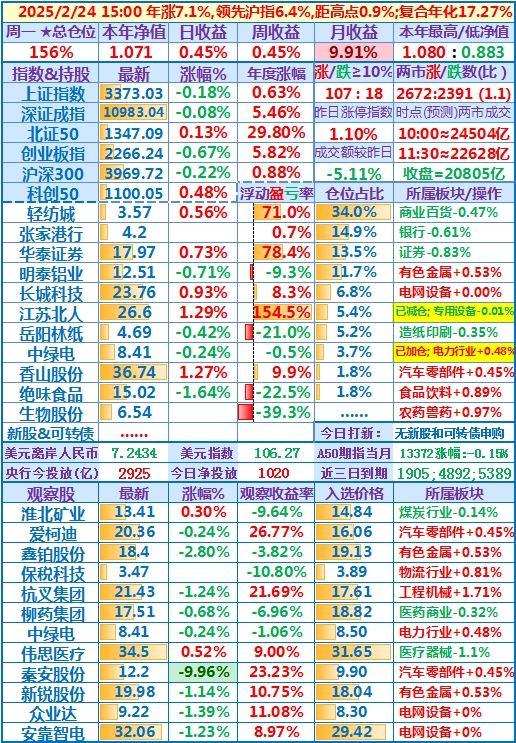 今日操作(观察):谨慎持股,近期仓位先保持在140%±5%……申购新股……