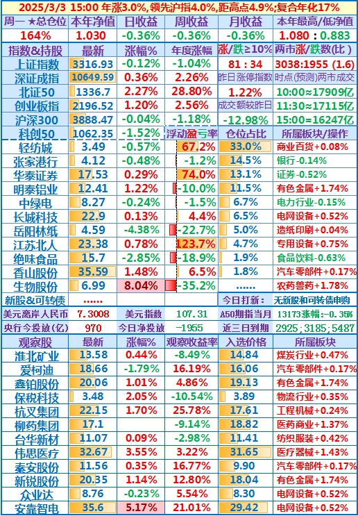 ★★2025-09-03:本年净值1.301,日收益-0.99%,仓位148%……
