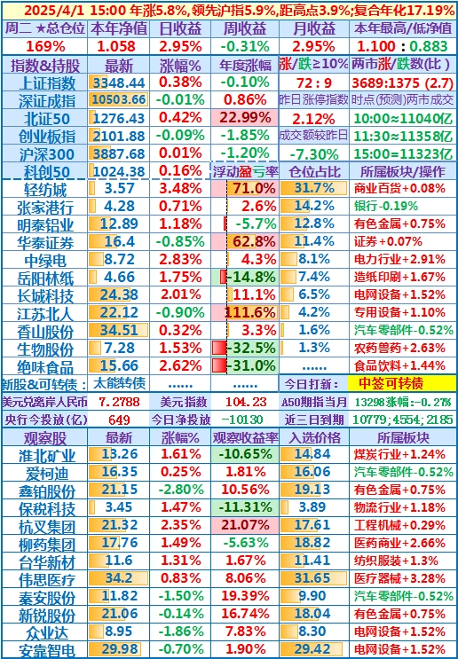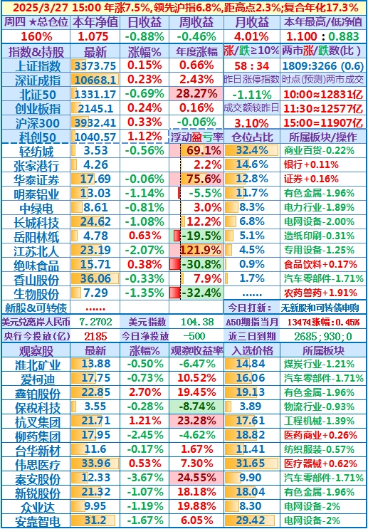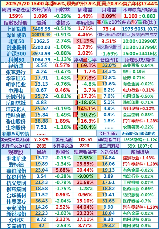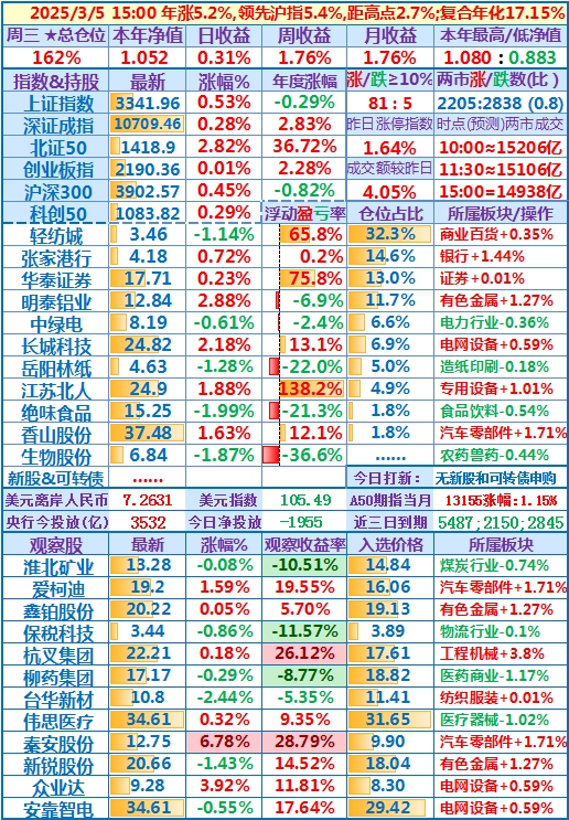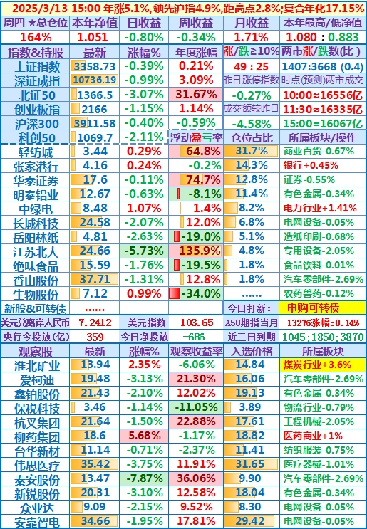 ★★2025-09-05:本年净值1.299,日收益+0.45%,周收益-1.45%,仓位149%……
