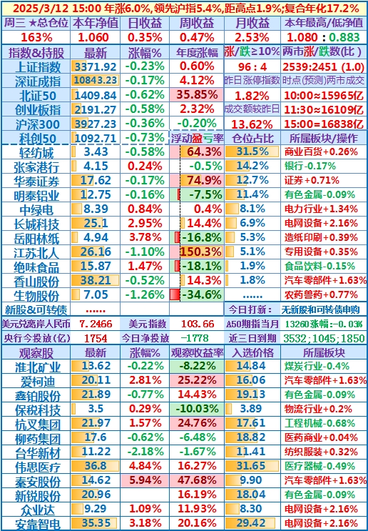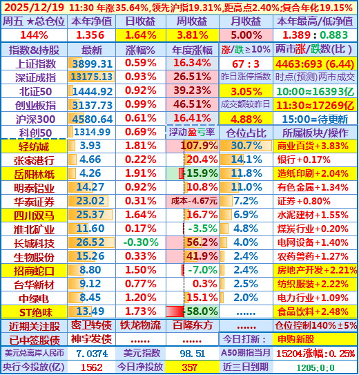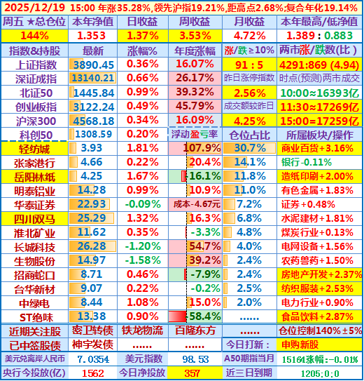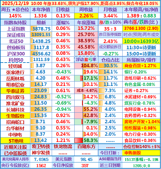 ★★2025-12-19:本年净值1.353,日收益+1.37%,仓位144%……