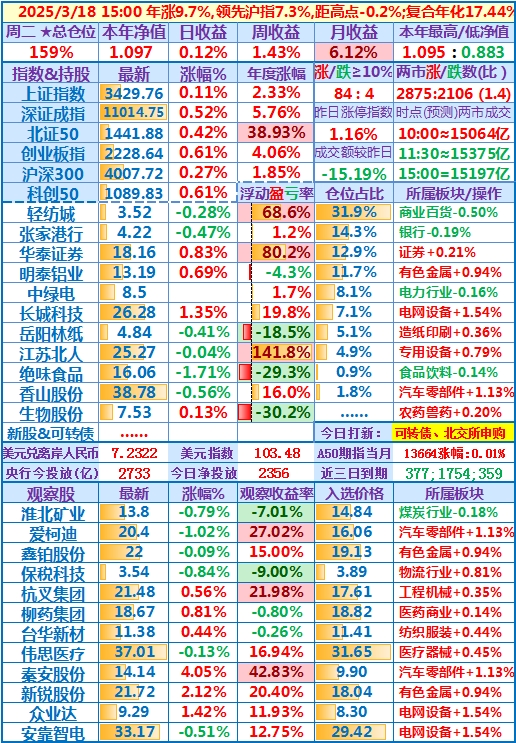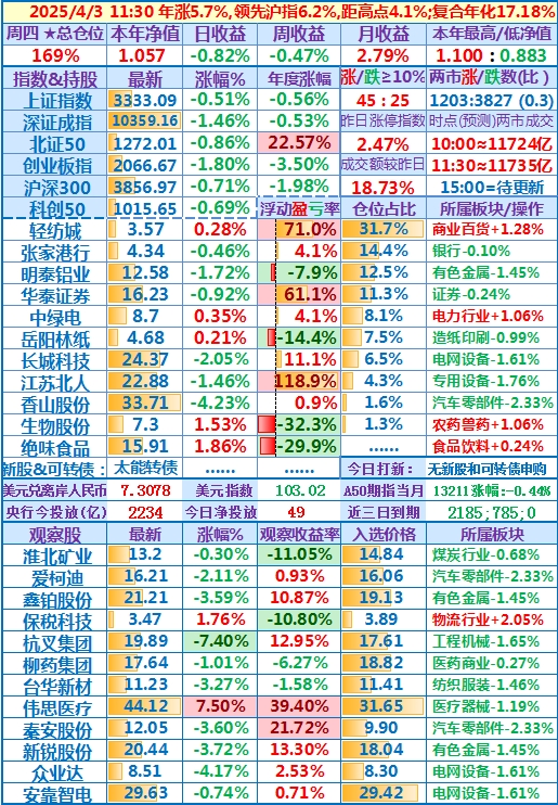 ★★操作(观察):谨慎持股,近期仓位先保持在140%±5%……北交所有新股申购……