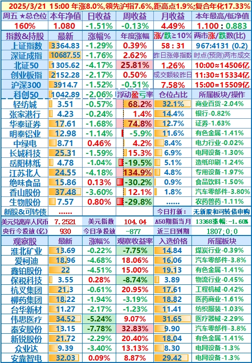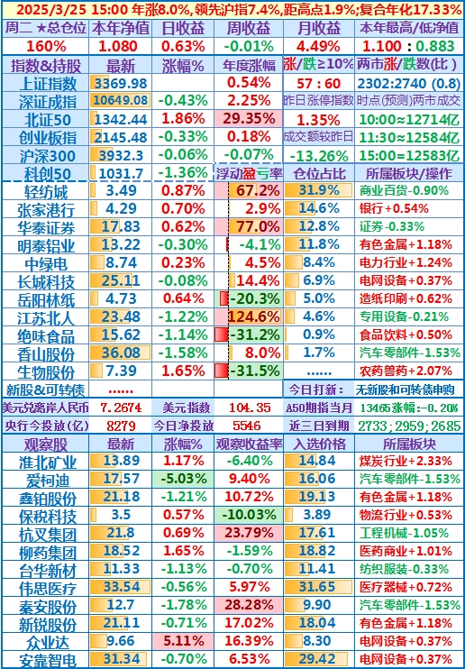★★2025-08-25:本年净值1.334(新高),日收益+0.94%,仓位153%……