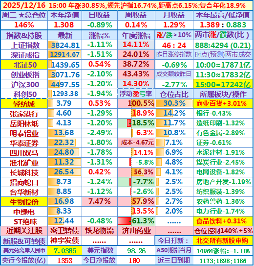 ★★2025-12-16:本年净值1.308,日收益-0.89%,仓位146%……