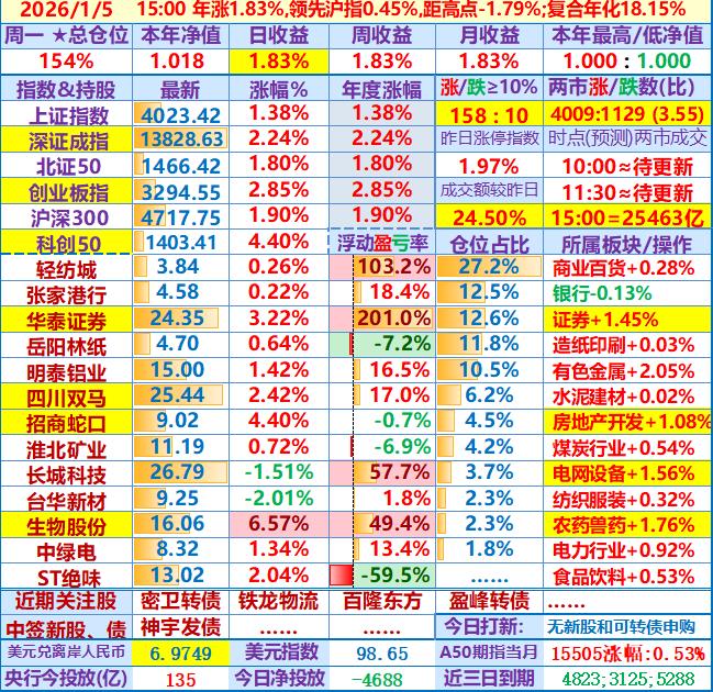 收盘,个股涨跌比1.5,两市成交额2.65万亿。持股10涨3跌,账户今日跑赢大多数A股主要指数……备忘:下周五天均有新股申购……