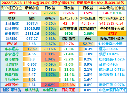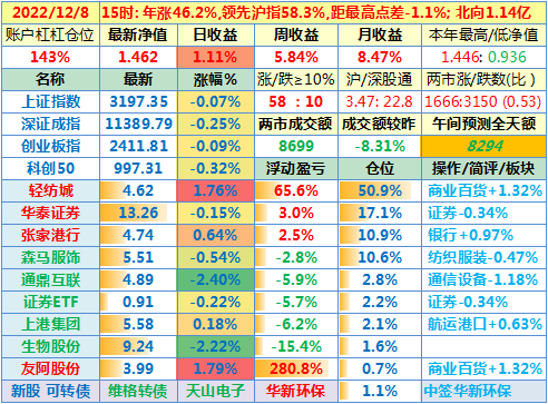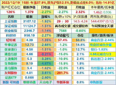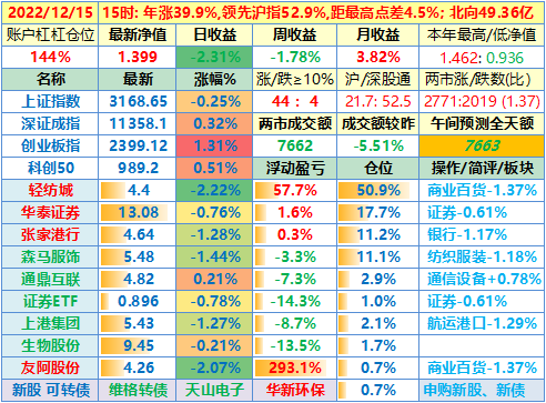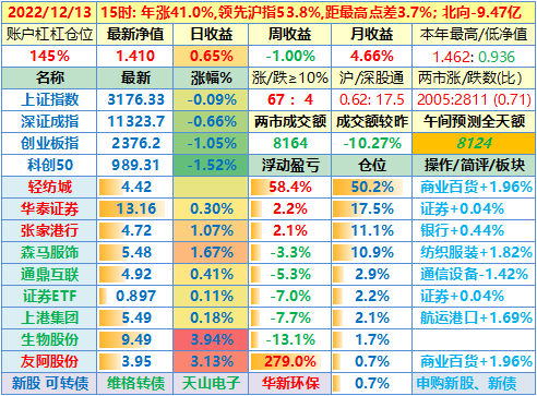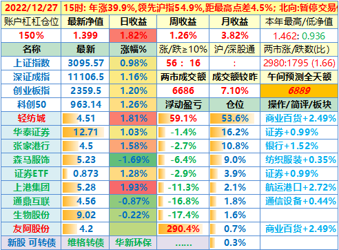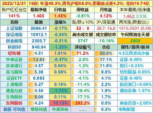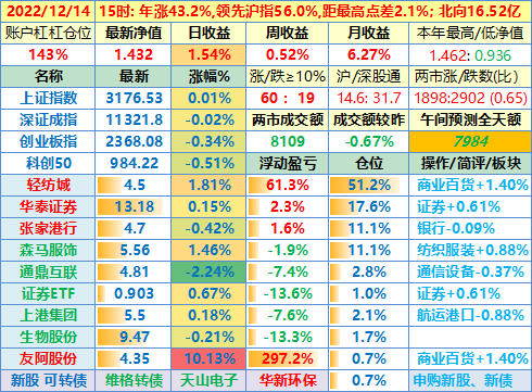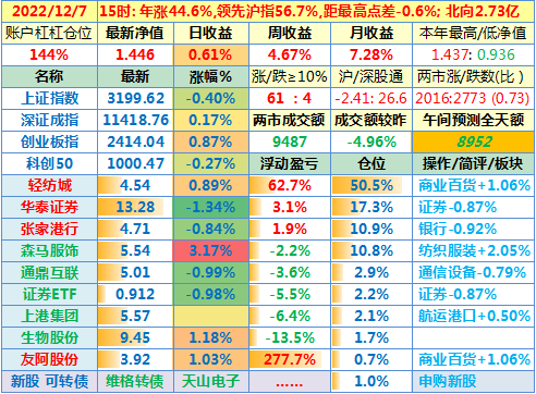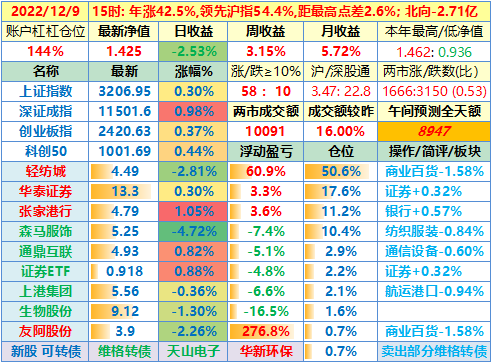 2022-12-09:【本年净值1.425】连续6日新高后下跌2.53%,11月28日至今共9个交易日里有8个交易日账户净值创新高,且今天之前连续6个交易日创新高,虽然今天没坚持住,但已经很知足了……