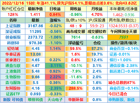 2022-12-16:【本年净值1.411,日收益+0.84%,周收益-0.96%,月收益+4.7%,年收益+41.1%】