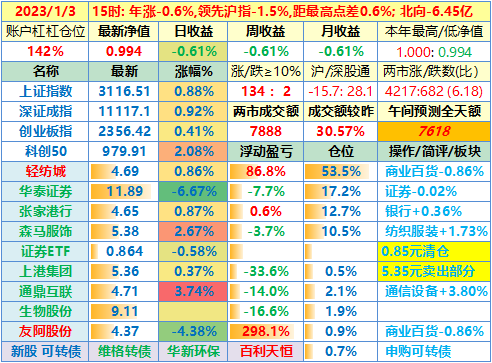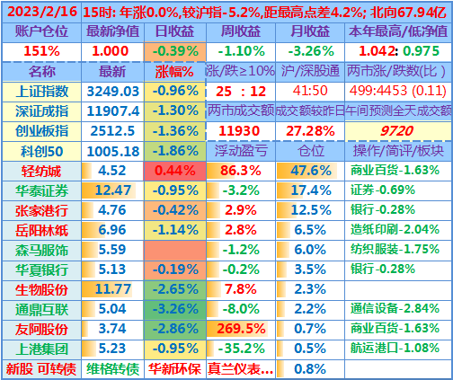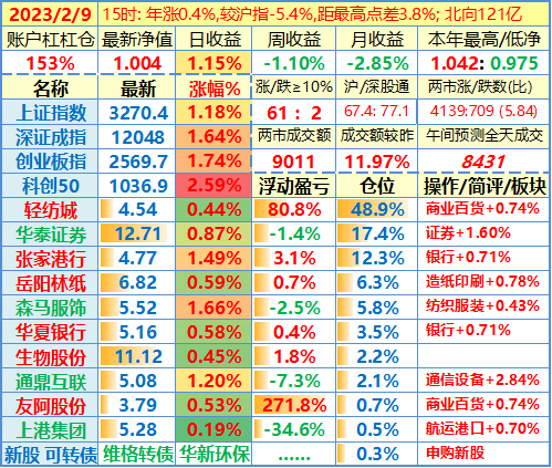 今日操作(观察):谨慎持股,近期仓位先保持在140%±5%……申购新股……
