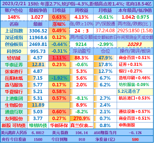 2023-3-2:本年净值1.092,日收益+0.43%。不知不觉已连续九个交易日每日净值收阳,也连续几日创本年新高了
