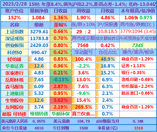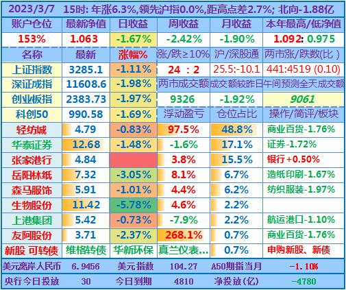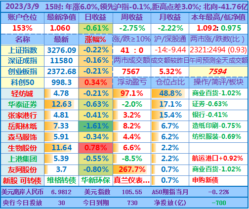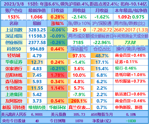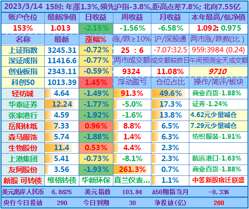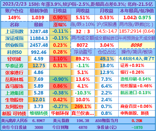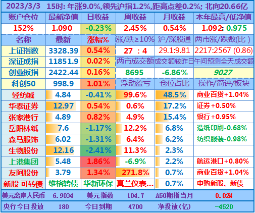 2023-3-3:本年净值1.090,日收益-0.23%,周收益+2.45%,结束了已连续九个交易日的收阳势头……