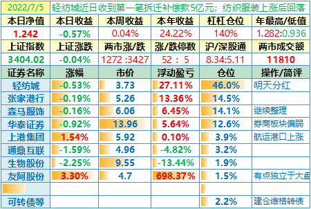 22-07-05:净值 1.242,日收益-0.57%,周收益+0.04%,月收益为零……