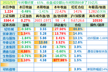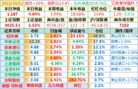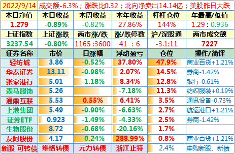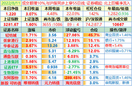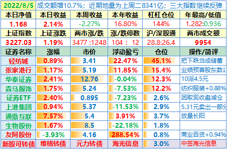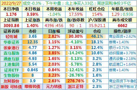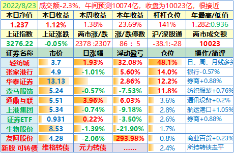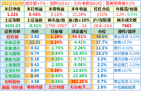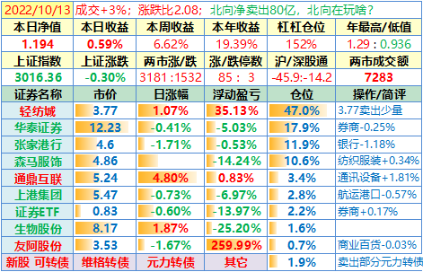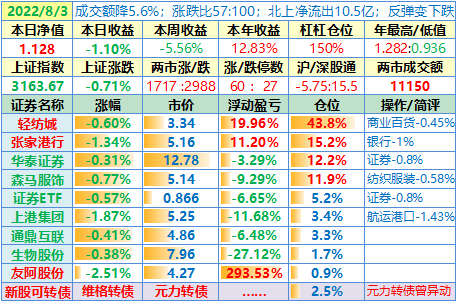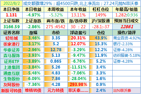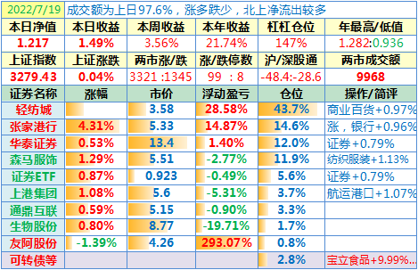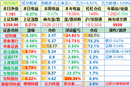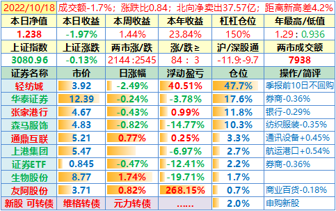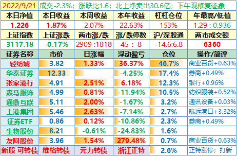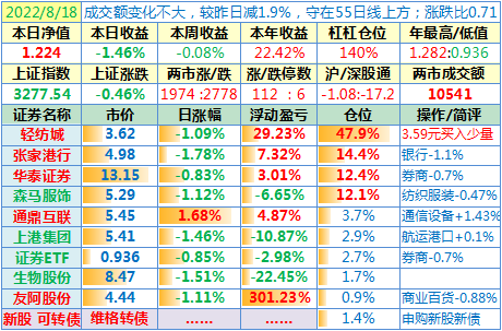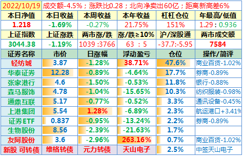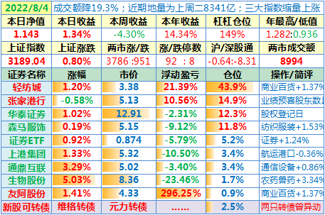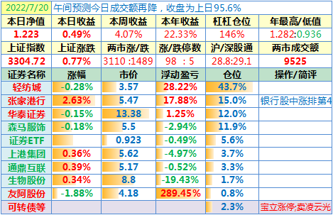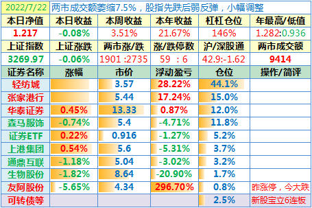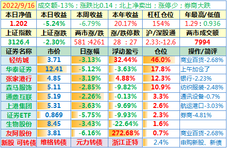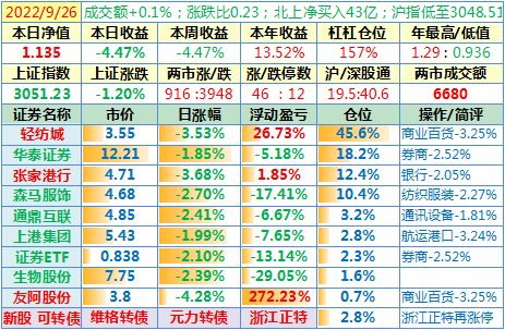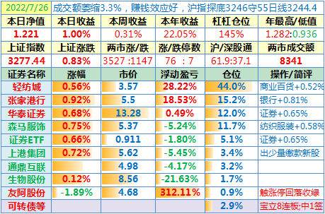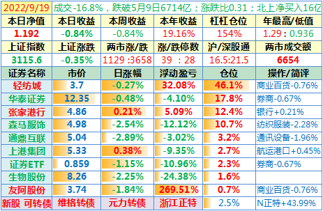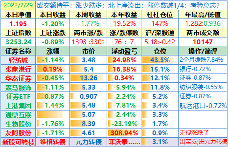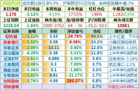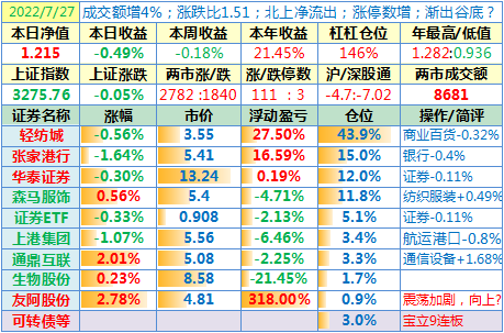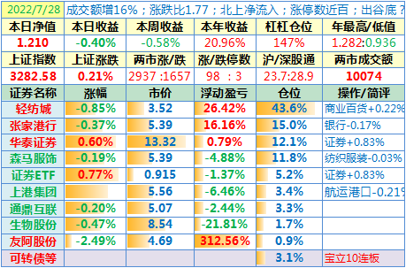 操作:无;华泰证券、张家港于又现浮盈了……
