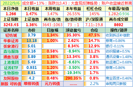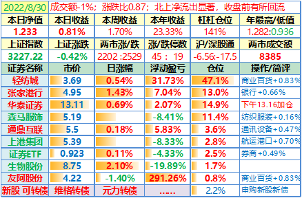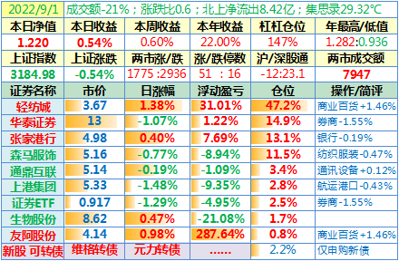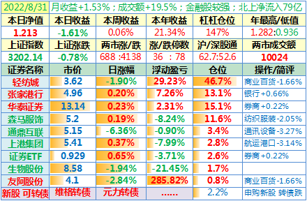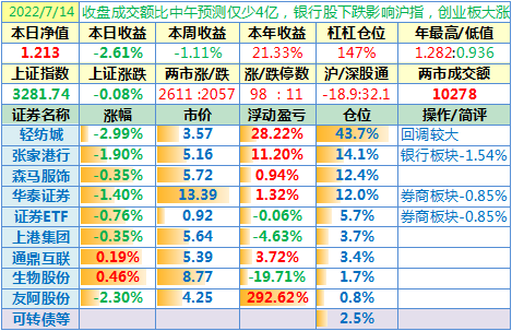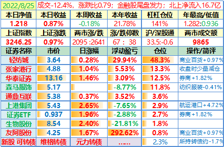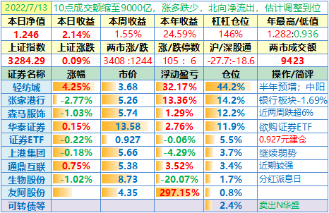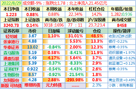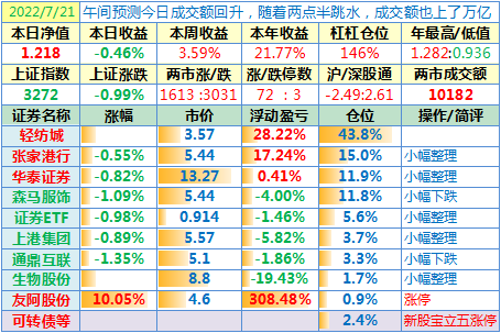 操作:无;华泰证券、张家港行盘中都出现过持仓浮盈……