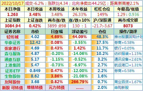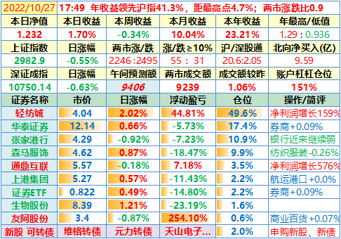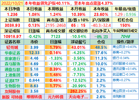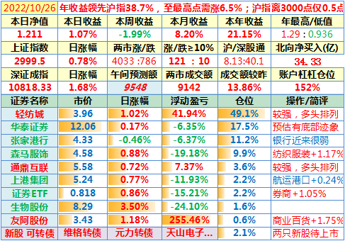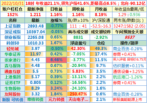 22-10-31:【本月收官,账户本月收益8.19%】本月大盘跌得有点猛,但我这次的心态比4月那次更好,关键是轻纺城对账户收益做出了最大贡献!