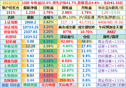22-11-02:成交量突破万亿!收复3000点!