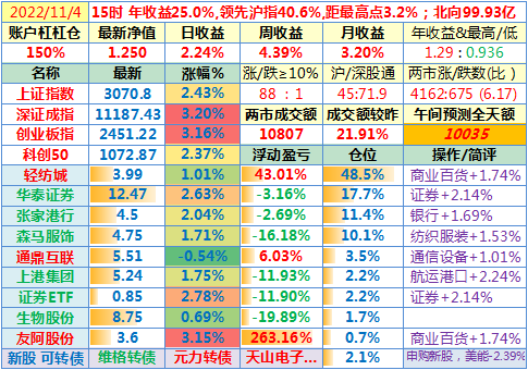 2022-11-04:【两市成交额3天内第二次破万亿,北上资金净买入百亿,指数集体大涨】