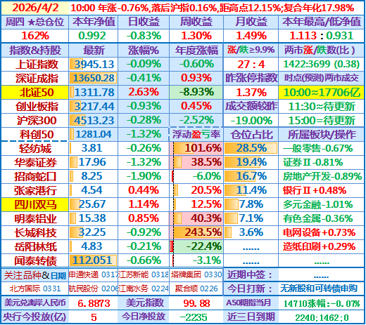 2022年~2026年实盘记录(交易日盘后更新),详见回复跟帖 。