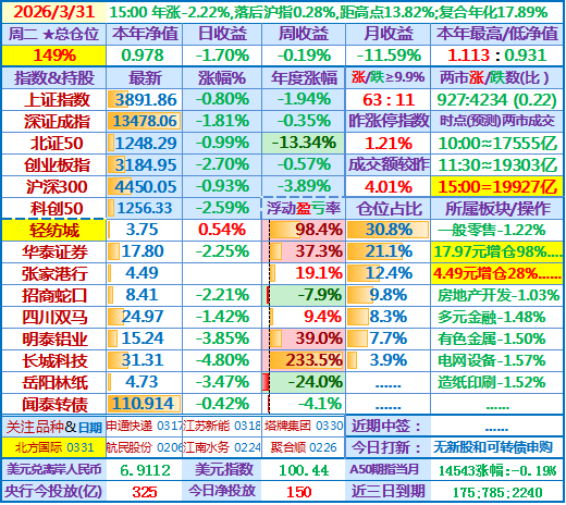 ★★操作(观察):继续持股……今日有北交所新股申购……观察北方国际(涨停开盘,后开板了,愚人节快乐?!)……可能低吸招商蛇口……受消息刺激,今日目前大盘向好,昨天抄底的两只个股小幅盈利……