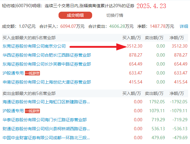 图一:轻纺城 龙虎榜(东莞证券股份有限公司南京分公司连续三个交易日净买入3512万元)