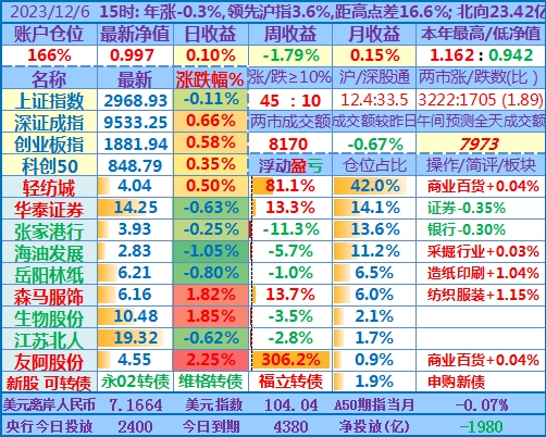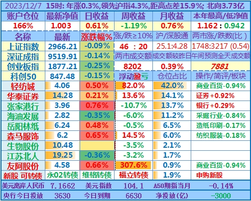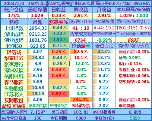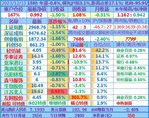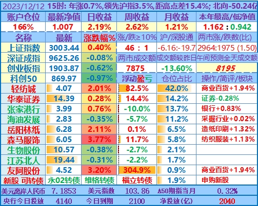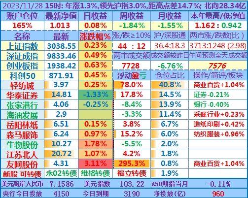 ★★操作:申购新股、新债……走势真难料,沪指又想去和3000点谈恋爱了,我的本年账户净值又回到1.00下方……
