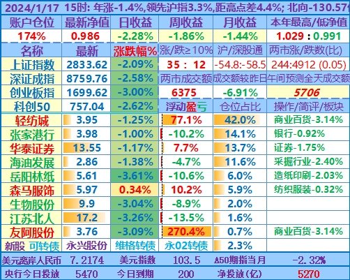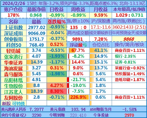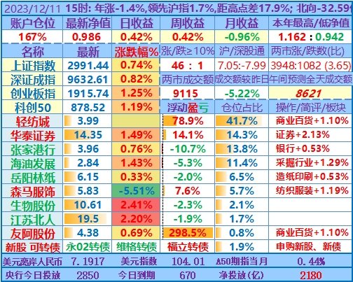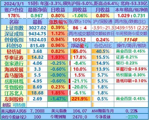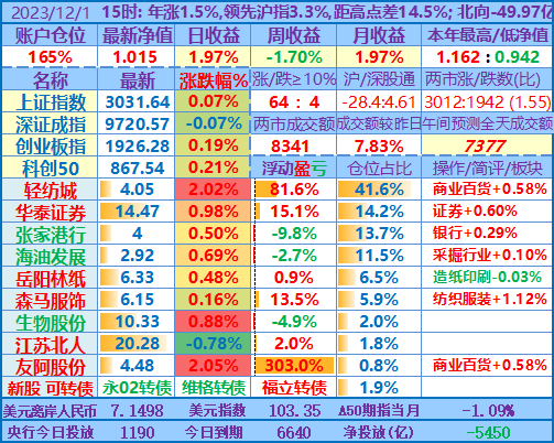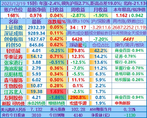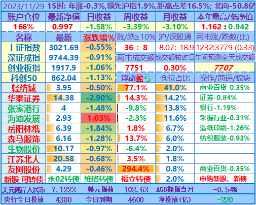 ★★操作:无……今日重仓股表现相较大盘平淡,虽有杠杆,但账户净值涨幅一般