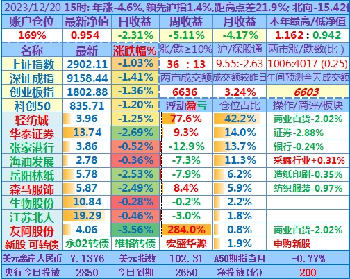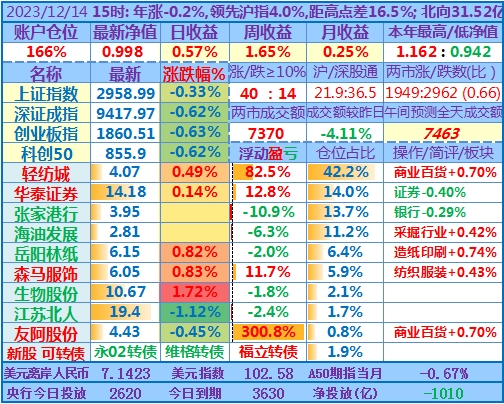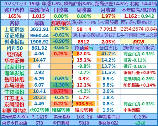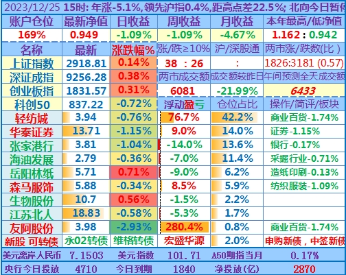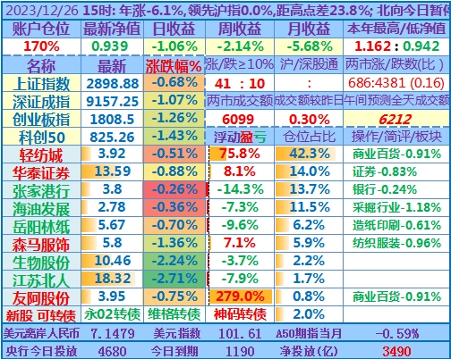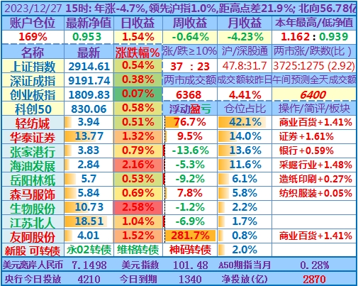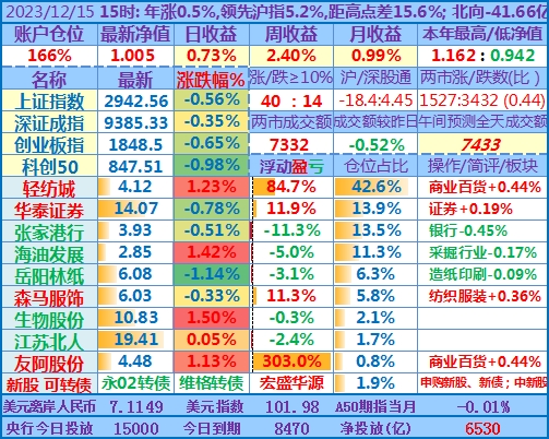★★操作:无……12月账户开门红,本年净值快速回到1.00上方……