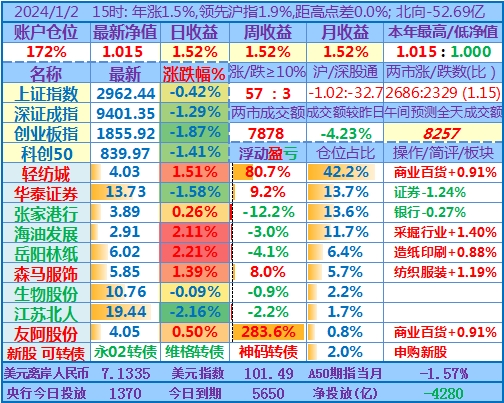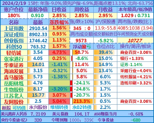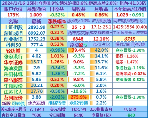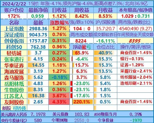 ★★操作:无……龙年开市,账户飘红,继续持股不动……