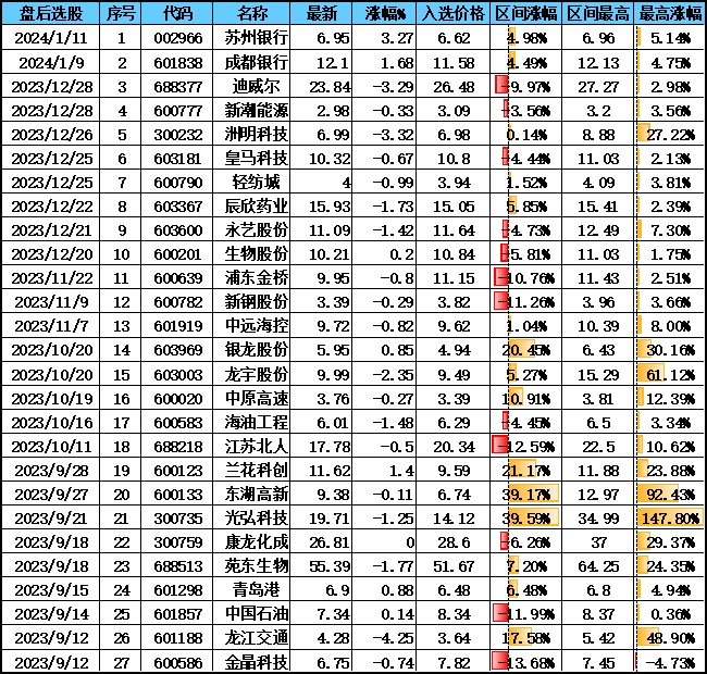★★本月已入选观察池的是苏州银行和成都银行,近期涨幅4%+,近期观察池情况见图