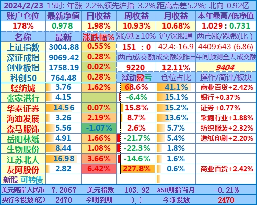 ★★操作:申购新债……最近两天大涨几乎收复了最近两周的失地,继续保持年初计划……