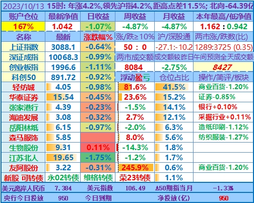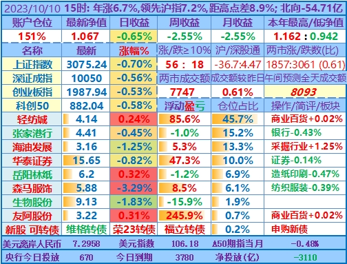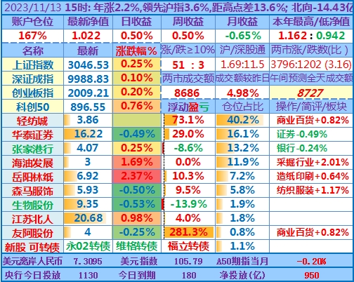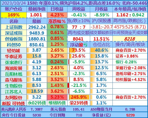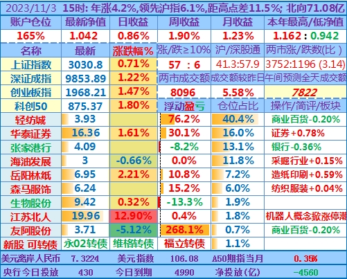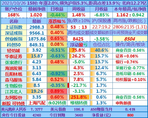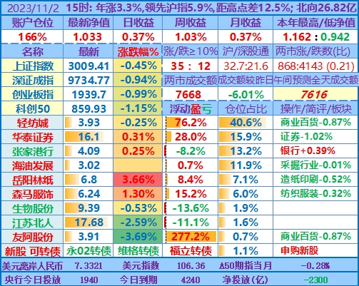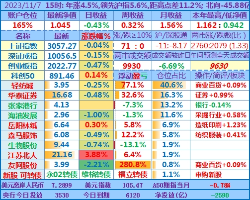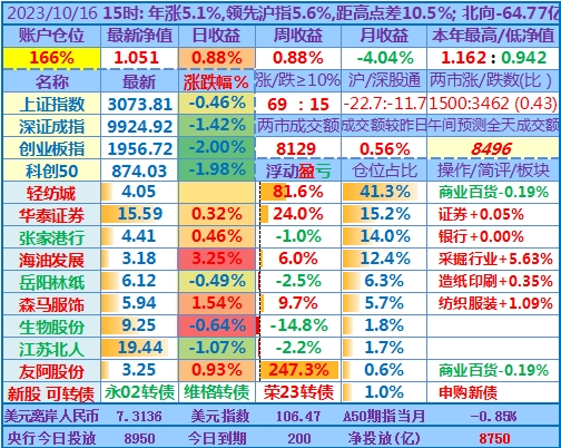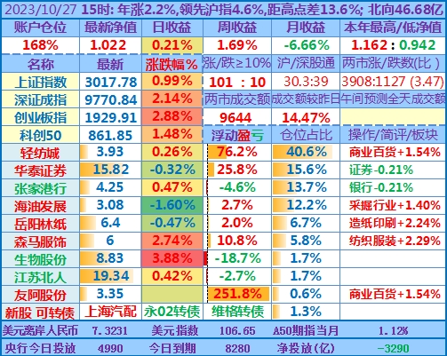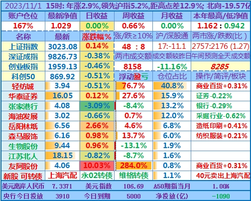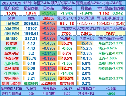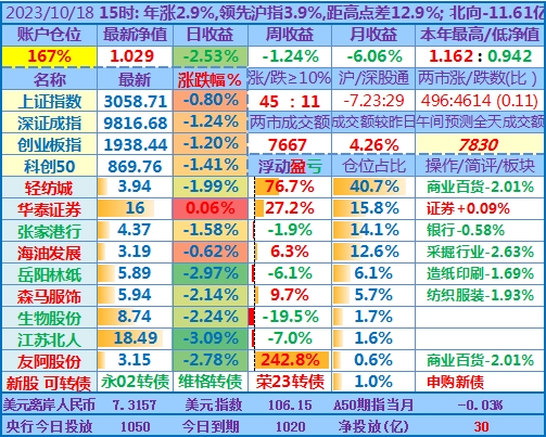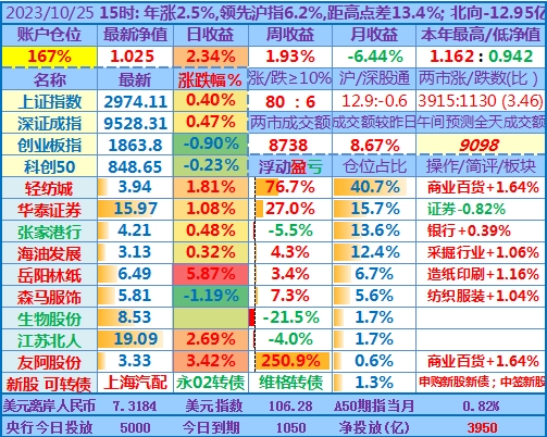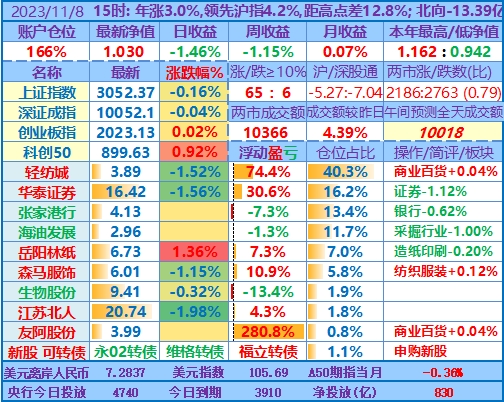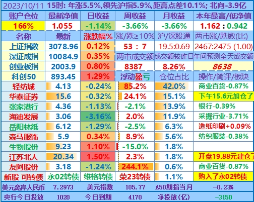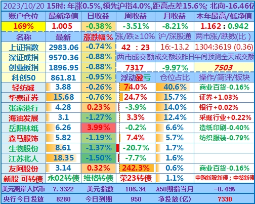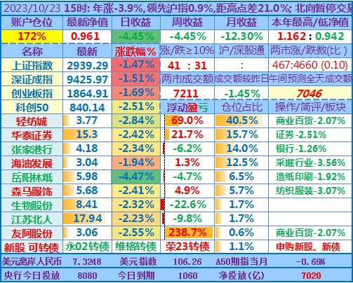 ★★操作:申购新股;卖出中签的新债燃23转债……这几天持仓中的银行、证券股大幅弱于大盘