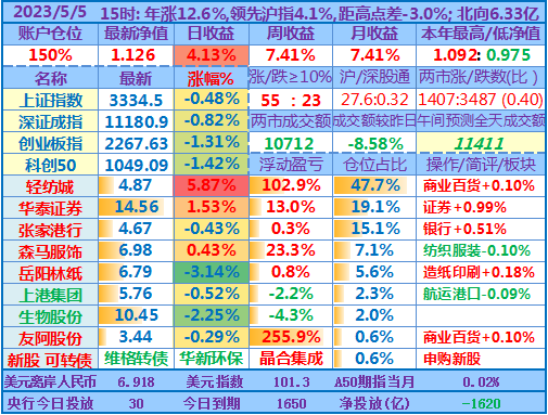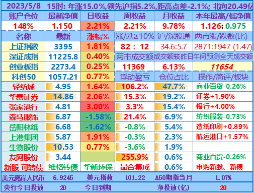 今日操作(观察):谨慎持股,近期仓位先保持在140%±5%……申购新股、可转债……