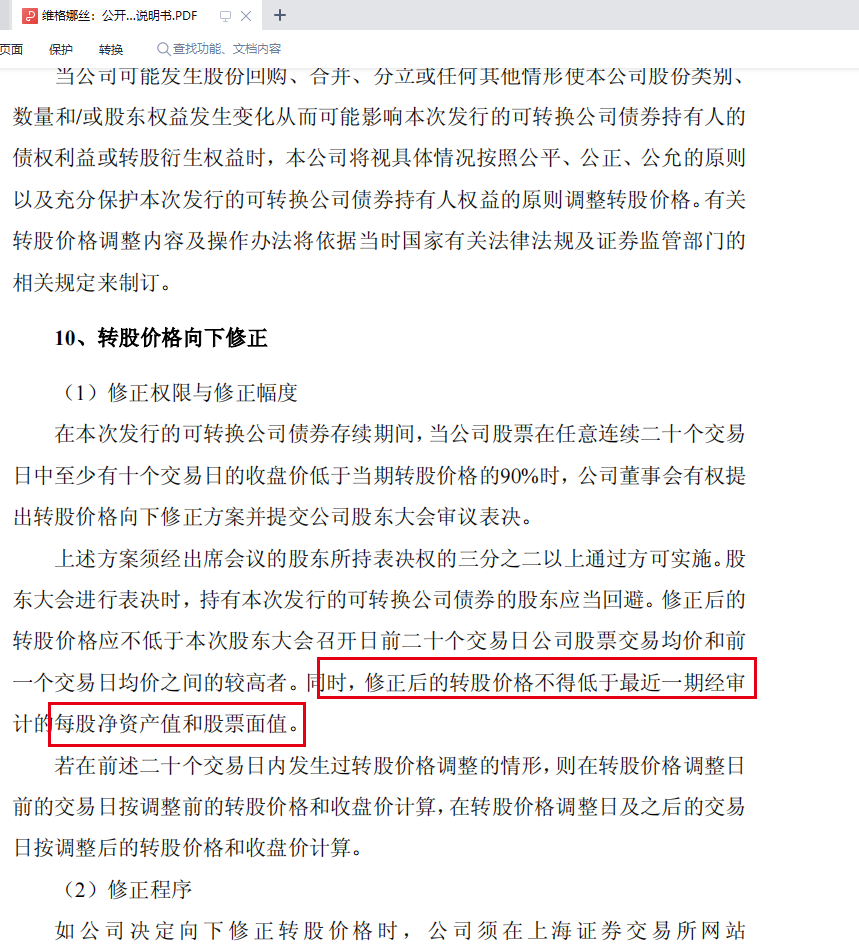 较高者,同时修正后的转股价格不低于最近一期经审计的每股净资产和股票面值。